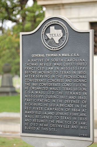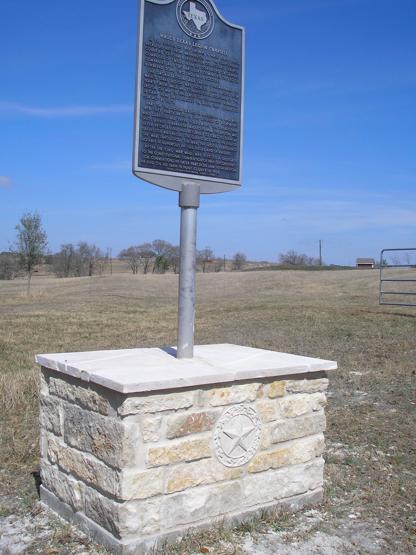 Historical marker noting the location where Waul's Texas Legion was formed.